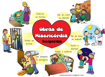 Desenhos realizados pelo blog: "Dibujos para catequesis" para explicar as Obras de Misericórdia e traduzidos pela Tia Paula.